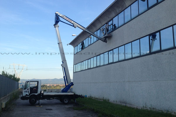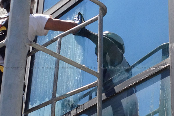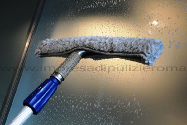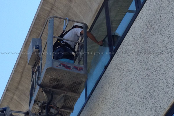 Attrezzature e prodotti idonei per il lavoro in sicurezza, trattamento delle vetrate con prodotto idrorepellente per una pulizia più duratura e interventi di manutenzione più diradati.